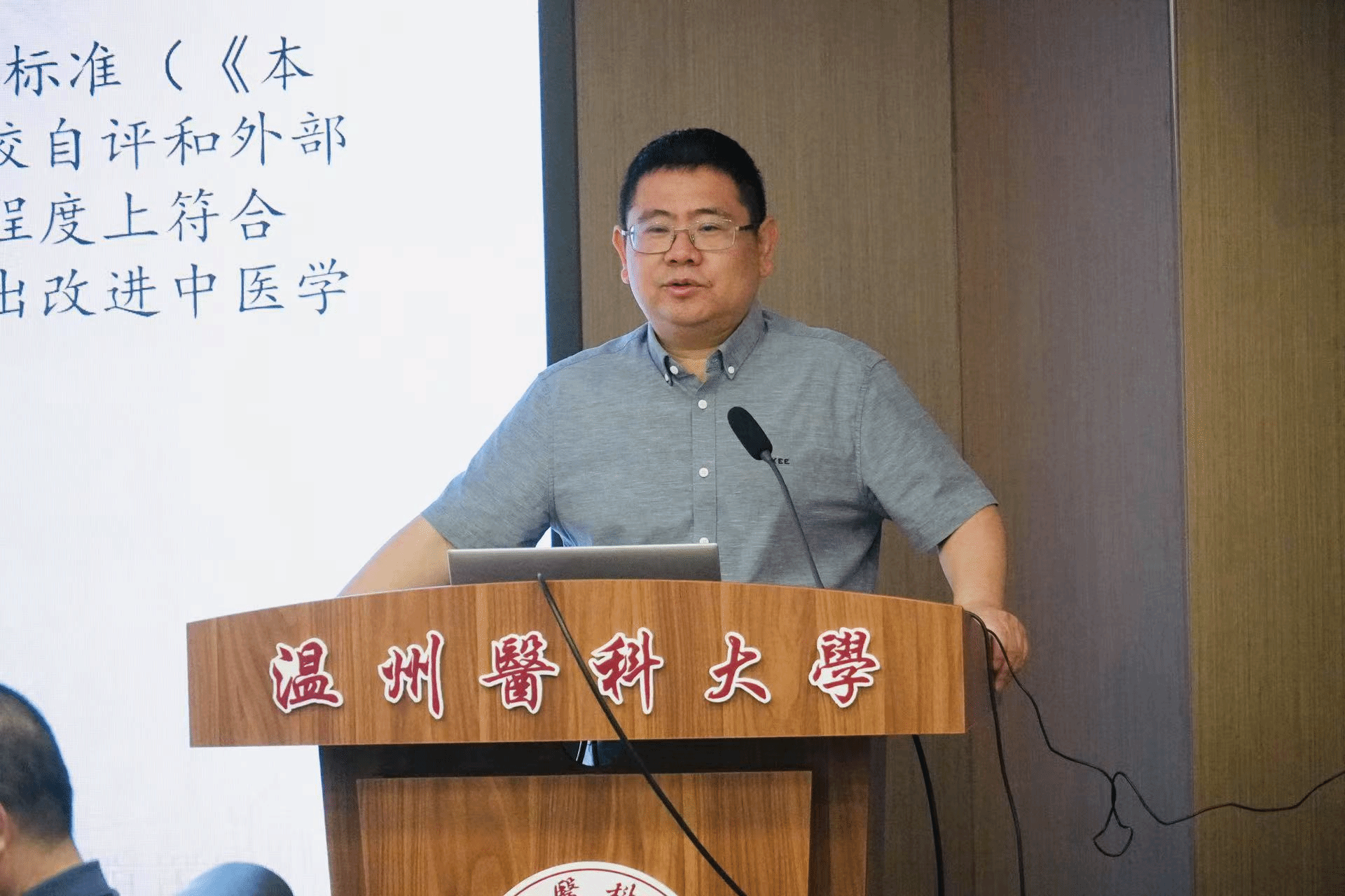副院长袁拯忠开展认证初访应知应会培训,他围绕学院基本情况、中医学认证相关知识和谈话内容与提纲等,为参会人员系统梳理认证初访应知应会的核心要点。
